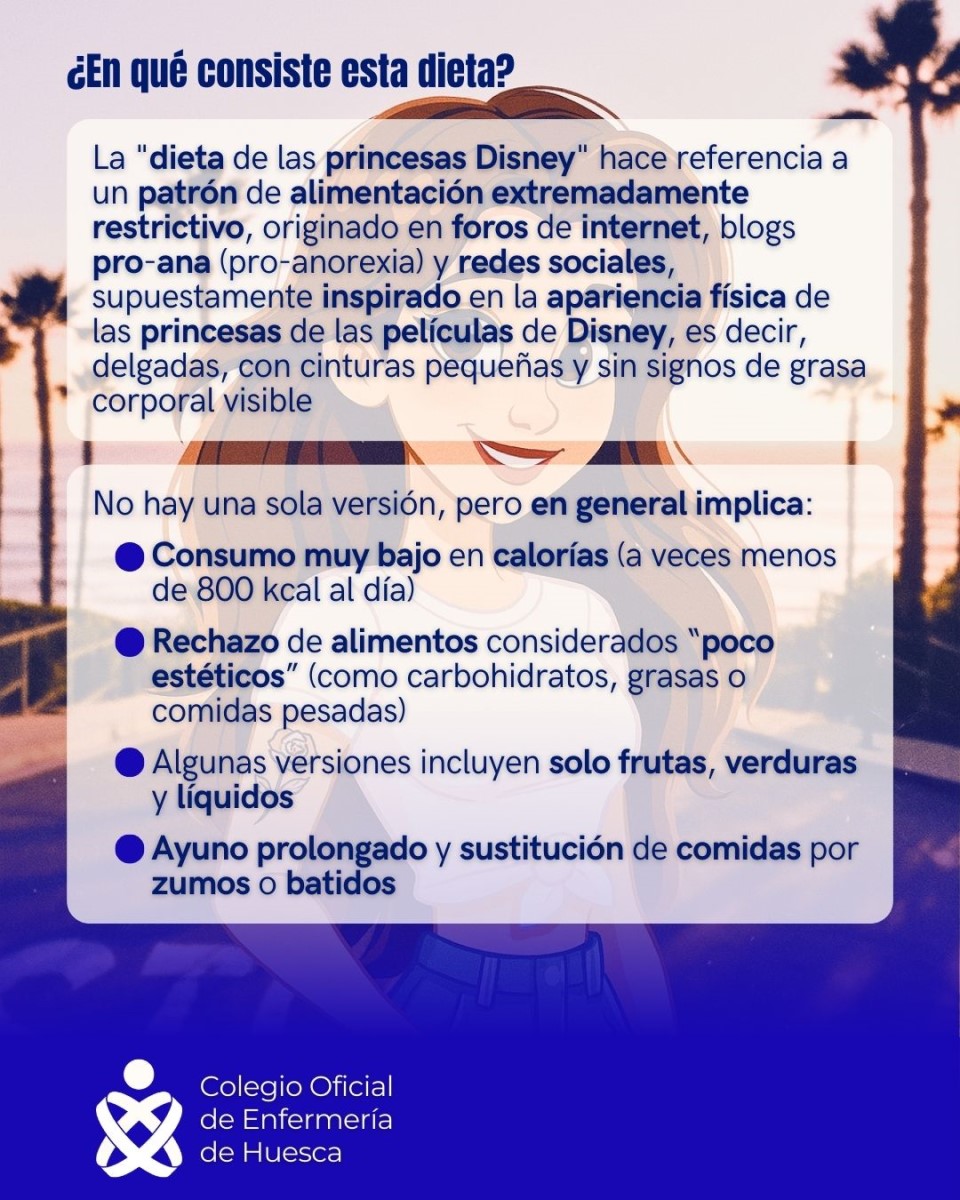 CONSEJO GENERAL DE ENFERMERÍA .- El CGE ha lanzado una advertencia ante la creciente difusión en redes sociales, especialmente en TikTok, de las llamadas “dietas de las princesas Disney”, un reto viral que propone perder más de 10 kilos en 15 días siguiendo pautas alimentarias extremas inspiradas en personajes de animación.