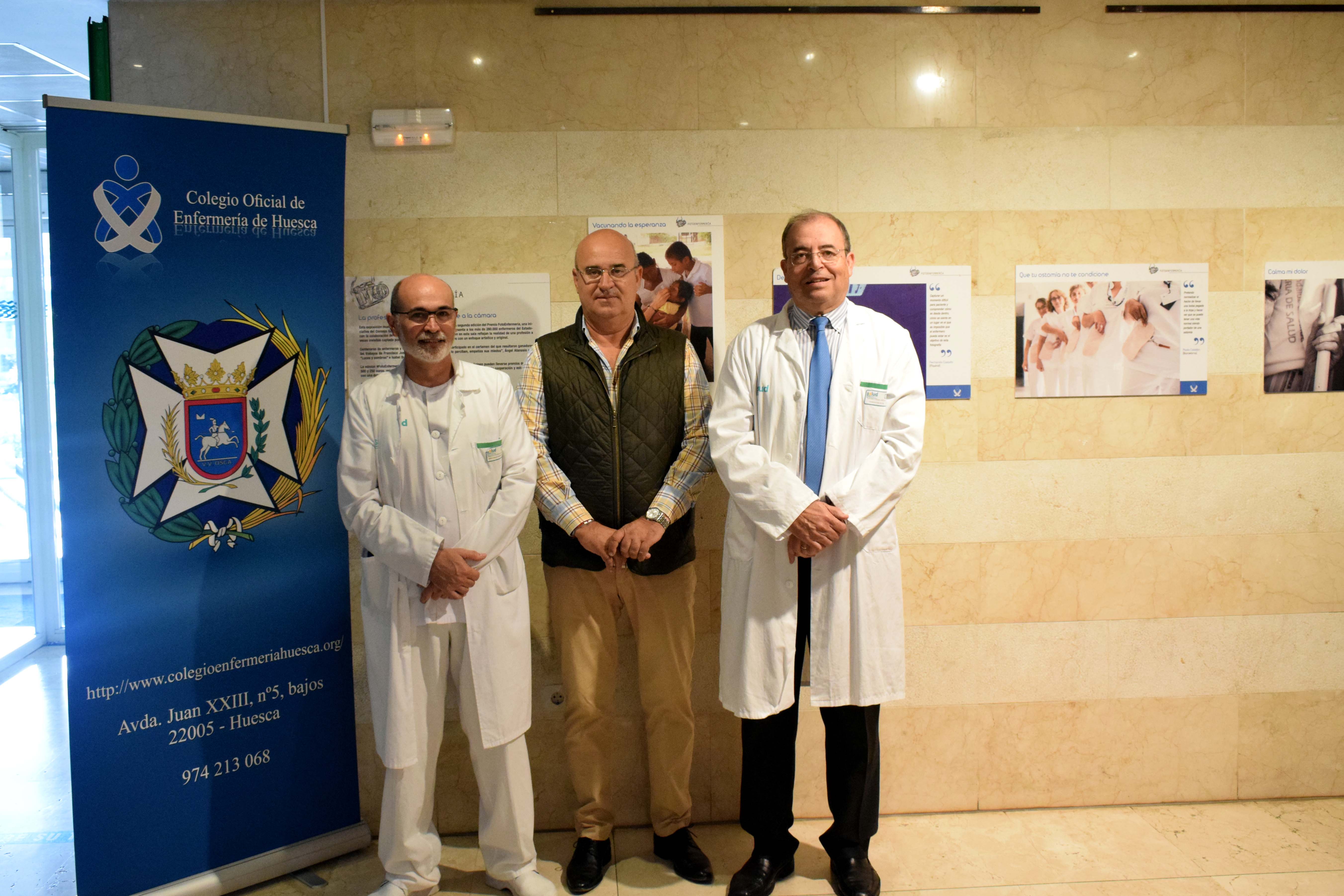 El director de Enfermería, Amalio Bermejo, el presidente del Colegio de Enfermería, Juan Carlos Galindo, y el Gerente del sector sanitario Huesca, José Ignacio Castaño